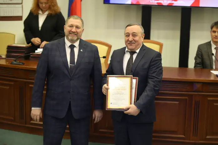 Почетный диплом «Золотой сотни» получила новинка ЛВЗ «Саранский», чья продукция вошла в первую сотню лучших товаров 2025 года. И.о. министра промышленности, науки и новых технологий Александр Давыдкин также вручил руководству предприятия диплом лауреата конкурса «100 лучших товаров России» в номинации «Продовольственные товары».
