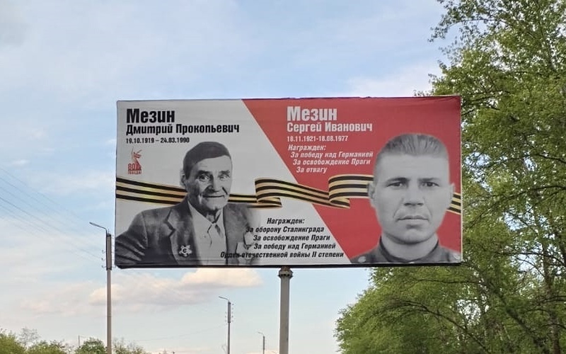 А мне интересно было узнать: кто же установил у дороги баннер с портретами Дмитрия Прокопьевича и Сергея Ивановича Мезиных? Кто воздал почести рядовым труженикам самой страшной в истории человечества войны?