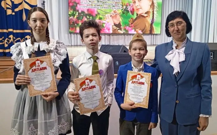 Со сцены культурно-спортивного центра «Алмаз» ученики сельских школ читали наизусть на родном татарском языке красивые и искренние стихи, написанные Гаделем Кутуем, Фатихом Каримом и другими талантливыми поэтами, сражавшимися на фронтах Великой Отечественной войны.
