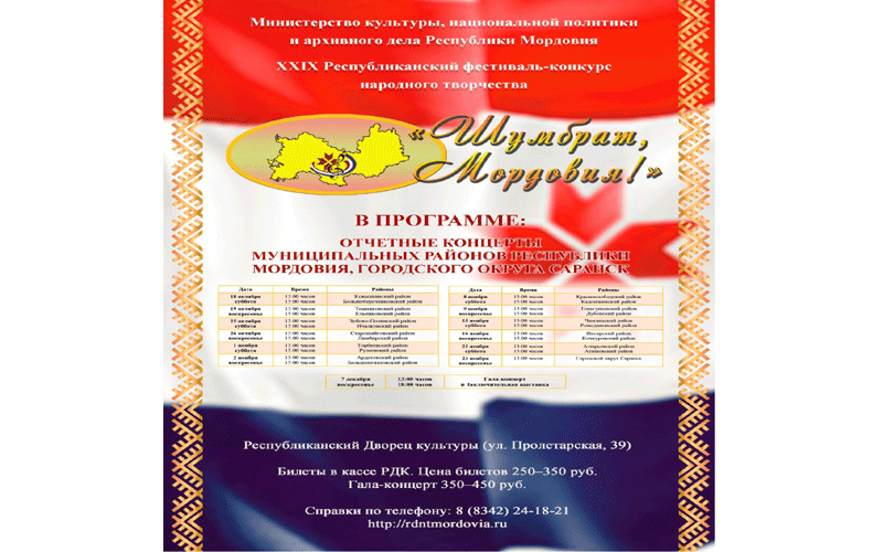 С 18 октября по 7 декабря Саранск станет сердцем XXIX Республиканского фестиваля-конкурса народного творчества «Шумбрат, Мордовия!».