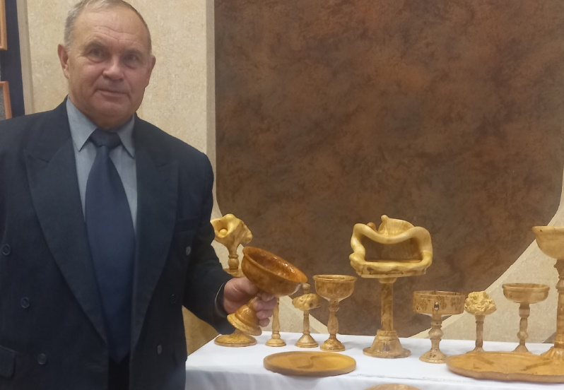 Не менее талантлив его коллега по работе с деревом Алексей Сурков. Вручную на станке он создает из разных пород дерева посуду, которая украсит любой стол. А созданные им кубки для напитков — предмет зависти для любого киношника.