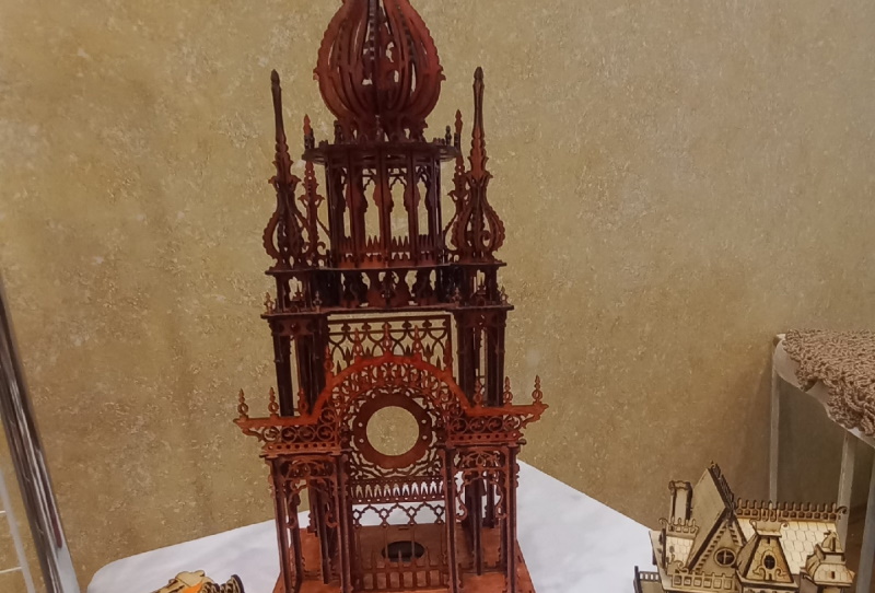 Работы народного умельца Владимира Гуркина поражают точностью деталей. На лазерном станке из фанеры «Левша» выпиливает настоящие произведения искусства: резную карету, ночник, дом с башенками и даже многоярусный собор с кружевными витражами.