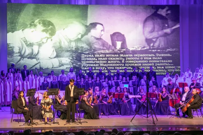 В Саранске продолжаются торжества, посвященные памяти святого Патриарха Тихона, 100-летие кончины которого отмечается в 2025 году. Этим летом памятные мероприятия проходят по всей России и в Белоруссии, а ковчег с мощами святителя Тихона переносится из города в город. Вчера мощи Патриарха были доставлены в столицу Мордовии, в Свято-Феодоровский кафедральный собор. А вечером 23 июня в Театре оперы и балета имени И.М. Яушева состоялся литературно-музыкальный спектакль «Хранитель церкви Русской».