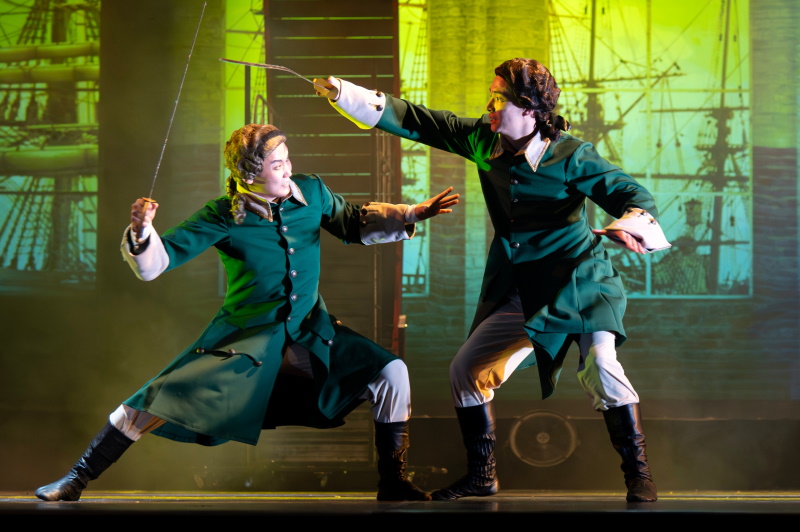 А, периодически спадающее со штанкета белое полотнище паруса, как и сквозная музыкальная тема «звучит» символом той самой детской мечты и главного призвания героя – беззаветного служения Отечеству.