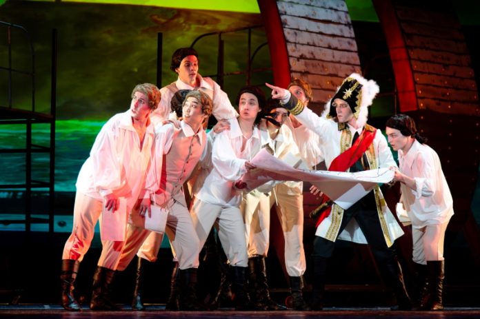 А, периодически спадающее со штанкета белое полотнище паруса, как и сквозная музыкальная тема «звучит» символом той самой детской мечты и главного призвания героя – беззаветного служения Отечеству.