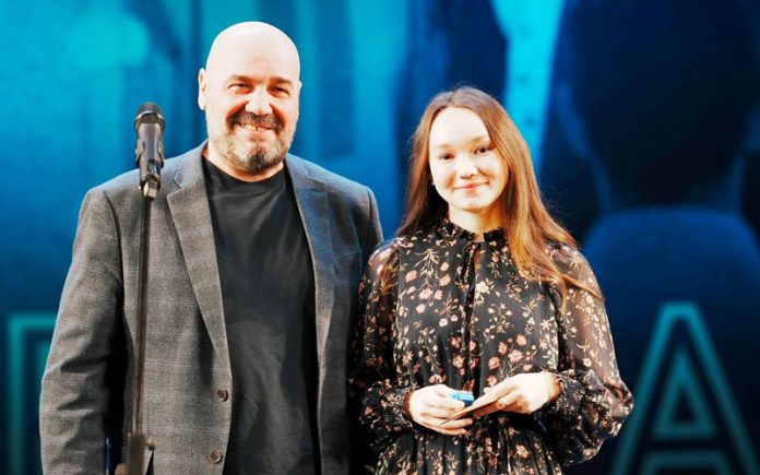 Членский билет Владимир Иванович торжественно вручил молодой актрисе саранского театра «Крошка» Алине Аверьяновой.
