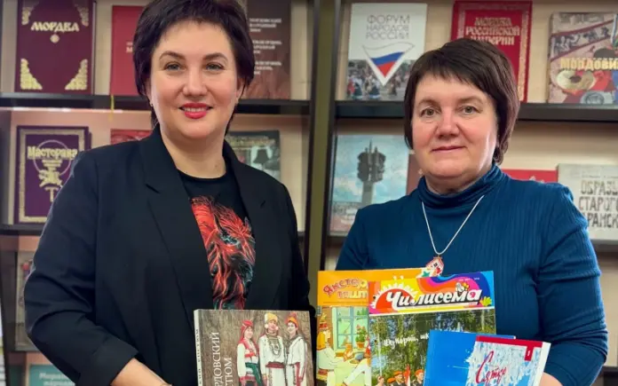 «Теме материнства посвящали свое творчество многие известные мокшанские и эрзянские поэты и прозаики. Анатолий Тяпаев в 1964 году выпустил сборник стихов и поэм на мокшанском языке «Тядя» («Мама»), в котором воспел свою мать, выразив свою любовь и глубокое уважение к ней. На эрзянском представлен роман в стихах «Ава ды лей» («Женщина и река») поэта Ивана Калинкина. Образ матери в его лирике – это не просто фигура, а источник вдохновения и мудрости, олицетворение родительского дома, тепла, света. Мать в творчестве Калинкина – это символ силы, жертвенности и стойкости, — знакомит с содержанием представленных произведений заведующая отделом национальной и краеведческой литературы Надежда Бочканова.