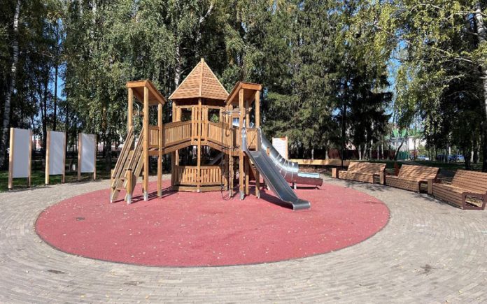 Так, для жителей Лямбиря любимым местом отдыха стала парковая зона на ул. Ленина. Особенно часто сюда приходят дети. Для них установили современный детский игровой комплекс. Рядом расположили локацию с парковыми качелями и скамейками.