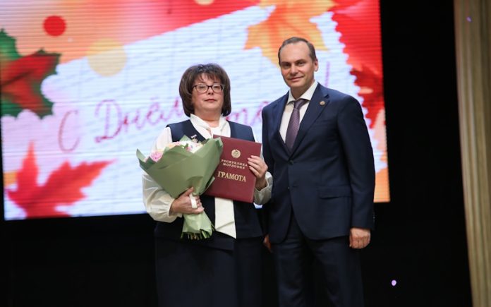 В этот день работники системы образования отмечены высокими наградами. Учителю физики Республиканского лицея для одаренных детей Виталию Радайкину вручена Почетная грамота Президента России. Министру образования РМ Елене Солдатовой объявлена благодарность Президента РФ.