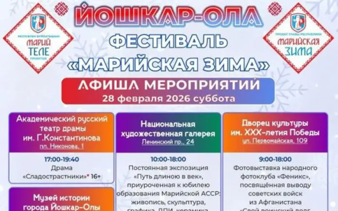 В последний день февраля в Йошкар-Оле состоится закрытие фестиваля «Марийская зима». Об этом сообщает ИА Кулик.