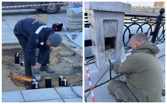 Устанавливают объект размером 3,3х2,2х0,5 метра у дома №86 на улице Эшкинина.