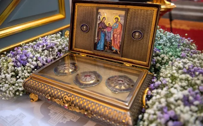 Частица, согласно легенде, сплетенная девой Марией, хранится в санкт-петербургском кафедральном соборе и регулярно посещает российские регионы.