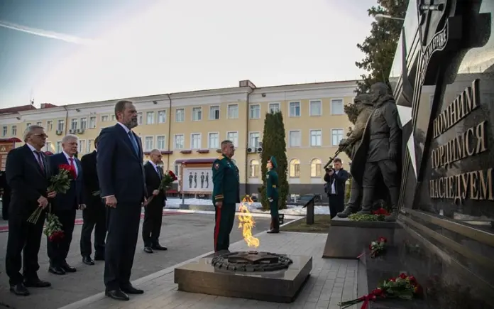 После официальной части командование и гости возложили цветы к мемориалу «Памяти военнослужащих и сотрудников округа, погибших при исполнении воинского и служебного долга».