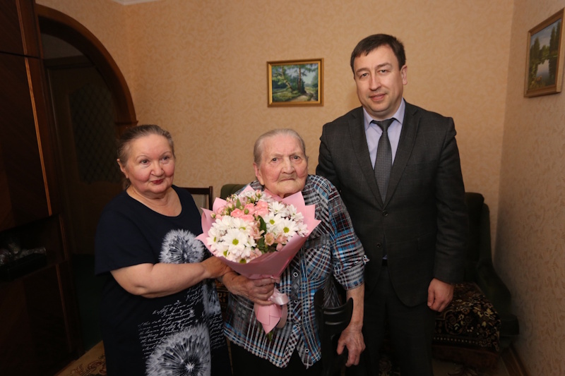 15 марта исполнилось 100 лет труженице тыла, ветерану Людмиле Степановне Песковой из Саранска. Поздравить юбиляра в этот весенний день пришел глава Ленинского района Владимир Пряхин. Он вручил ветерану письмо с поздравлениями от Президента России Владимира Путина, а также передал от имени Главы республики Артёма Здунова букет цветов и подарок.