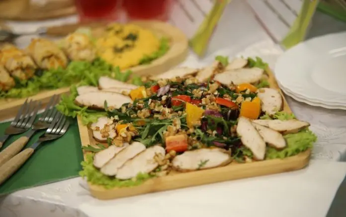 Предпочтение лучше отдать рыбе и белому мясу. Крольчатина, индейка или курица идеально подойдут для праздничного стола. К ним можно добавить зеленый овощной гарнир. Он подойдет и под цветовую гамму праздника, и для организма будет крайне полезен.