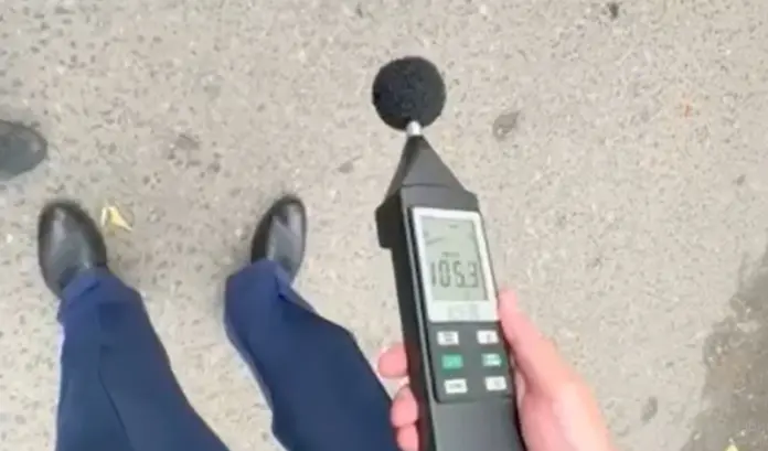 Шумомер показал превышение звука из глушителей машин на несколько децибел. Уровень шума составлял103,3 и 109,9 ДБА при допустимых 96.