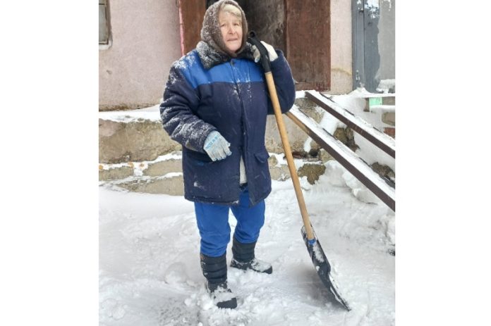 На ул. Коммунистическая, 25 двор чистит 69-летняя Любовь Викторовна. Вместе с коллегами из управляющей компании они трудятся с 6 часов утра.