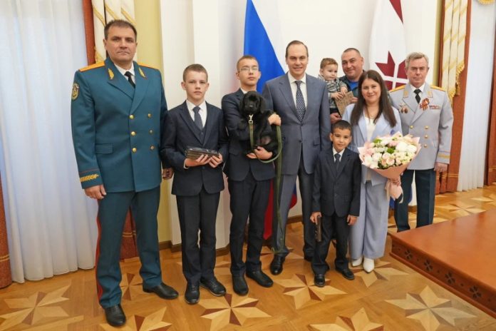 На память о встрече Глава Мордовии вручил членам семьи подарки. Но самым главным подарком стал двухмесячный щенок лабрадора. Бусаровы пообещали придумать ему красивое и звучное имя.