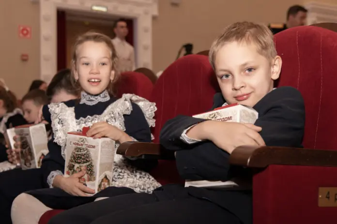 Все дети получили сладкие подарки и яркие эмоции от концертной программы. Наталья Казимирова и Александр Шичкин воспитывают сыновей Никиту и Савву. Оба мальчика с интересом смотрели представление, подпевали и подтанцовывали.