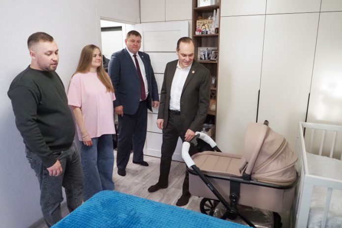 Алена и Евгений показали Главе региона, как обустроились на новом месте – заехали они буквально две недели назад. А обустроились действительно хорошо – ремонт аккуратный, в доме тепло и светло, уже купили все необходимое для комфорта и уюта. Конечно же, нарядили новогоднюю елку. Артём Здунов осмотрел жилое помещение, особое внимание уделил качеству социального ремонта. Своими силами молодые люди приобрели только мебель.