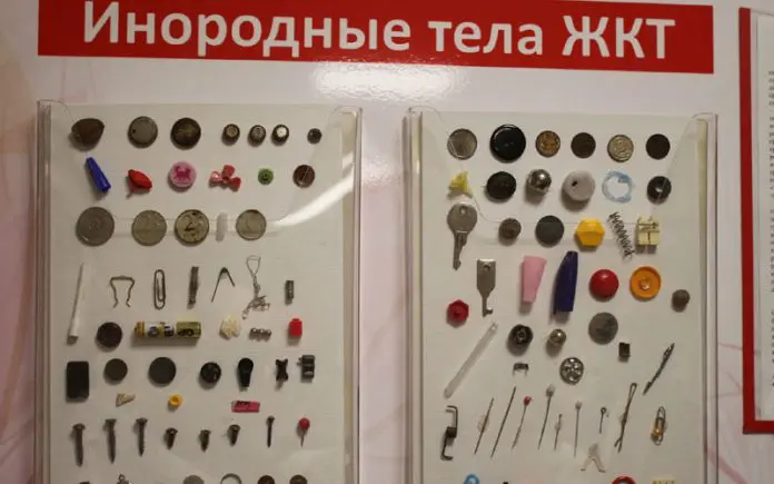 Иголки, булавки, ключики, монеты, детали конструкторов, батарейки — в Детской республиканской клинической больнице есть особый стенд, на котором собрана часть «инородных тел», проглоченных малышами. К счастью для ребят, из их желудков и пищеводов все эти предметы благополучно извлекли опытные врачи.