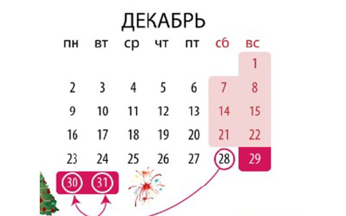 Новогодние праздничные выходные начнутся с воскресенья 29 декабря и продлятся целых 11 дней — по среду 8 января.