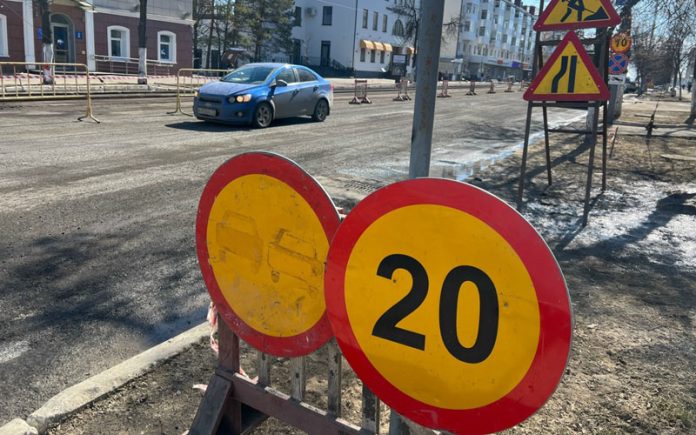 На время проведения работ движение на реконструируемом участке организовано с помощью регулировщика. Он обеспечивает проезд транспорта для жителей прилегающих домов и пропускает автомобили, доставляющие товары в местные магазины.