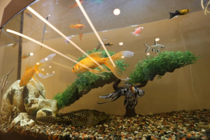 Некоторые могут. Золотая рыбка, например, способна жить в открытом водоеме, если на нем в течение всей зимы держится хотя бы небольшая полынья. Эта рыбка — декоративная форма карася, созданная в Китае. Там ее сначала разводили в прудах, поскольку в Китае пруды надолго не замерзают, а потом стали содержать в сосудах, превратив в аквариумную.