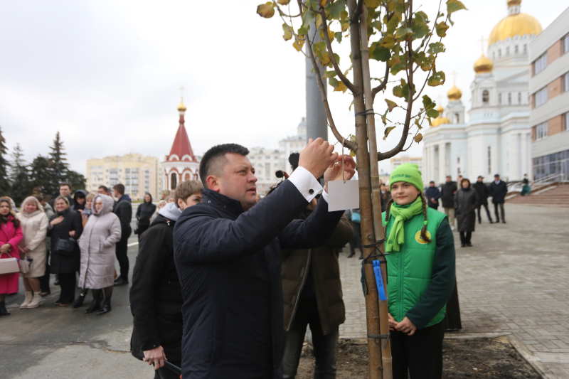 На память о своих городах мэры также высадили «Аллею городов Поволжья». Деревья высажены храма святому праведному воину Феодору Ушакову.