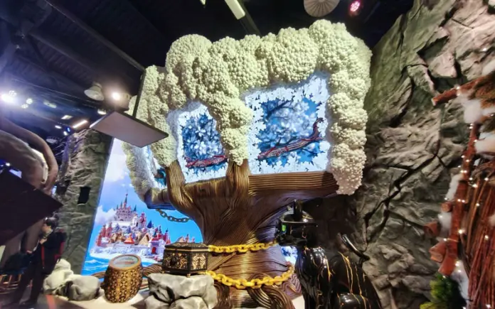 Витрина традиционных мордовских промыслов и ремесел стилизована под новогоднюю елку, а интерактивная панель «Поиск следов» предлагает гостям игру, посвященную персонажам мордовских былин.