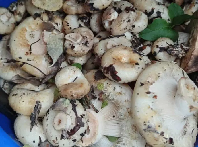 Традиционно грузди промываем, вымачиваем в воде. Воду нужно постоянно менять и вымачивать долго, но из-за того, что не располагаю большим количеством времени, вымачиваю один вечер и засаливаю. На дно бочки или ведра кладем зонтики укропа, листья хрена, вишни и смородины, посыпаем солью, укладываем первый слой груздей, посыпаем солью. Затем второй слой добавляем и также пересыпаем солью. Так до конца. Сколько соли? Кладу на глаз, классический рецепт посола – стакан соли на ведро груздей. Когда все грибочки уложены, наверх также можно положить листья хрена, вишни, смородины, зонтики укропа. Ставим под гнет. Оставляем на два-три дня. Но при этом следите, чтобы грибы не запенились. От жары в квартире у меня случалось такое, приходилось промывать и пересаливать либо досрочно приступать к следующей стадии засолки.