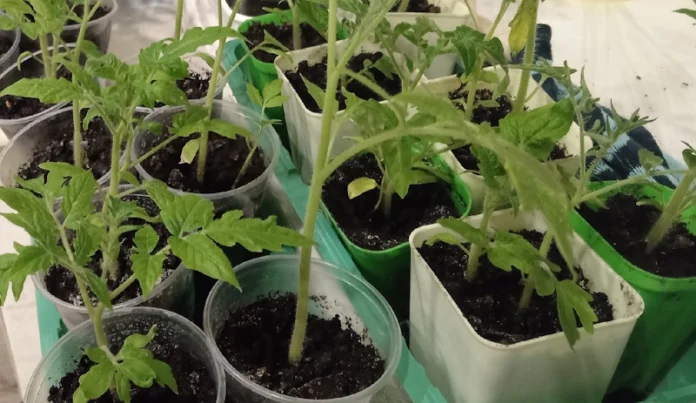Подсыпать землю или перевалить в большие емкости. В этом случае рассада приостановится в росте из-за освоения корнями нового объема. Кстати, перцам и баклажаном ничего подсыпать не нужно, для них этот прием не работает.