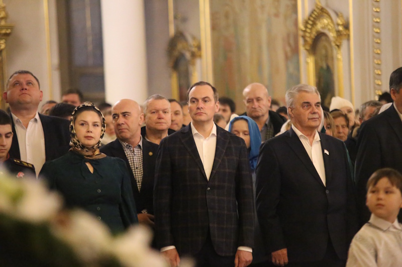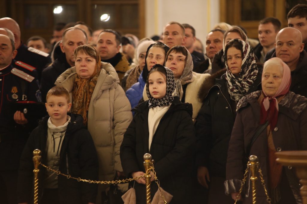 Особые молитвы во время богослужения были вознесены о защитниках России. С большой радостью прихожане собора (которые готовились к этому таинству) причастились святых Таин. А после праздничной службы всем детям, бывшим в соборе, митрополит Зиновий вручил рождественские подарки. Кстати, по домам, по районам города, от кафедрального собора верующих бесплатно развезли автобусы. Люди возвращались к своим родным, чтобы поздравить их с праздником Рождества Христова!