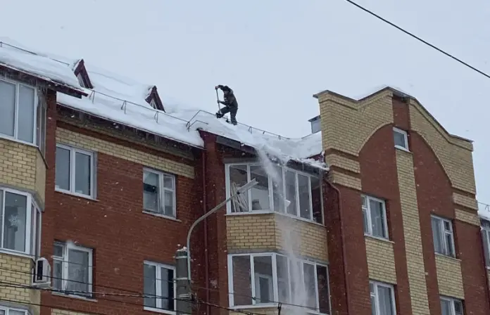Не прекращается напряжённая работа по очистке крыш многоквартирных домов от снега и наледи. В условиях капризной зимней погоды – с частыми снегопадами и метелями – проблема приобретает особую остроту: на кровлях образуются опасные сосульки и массивные скопления снега, угрожающие прохожим и имуществу.