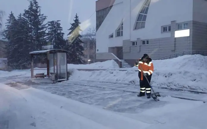 Городские коммунальные службы Саранска продолжают уборку дорог, тротуаров и остановок от снега. Работы не останавливались даже в новогоднюю ночь.