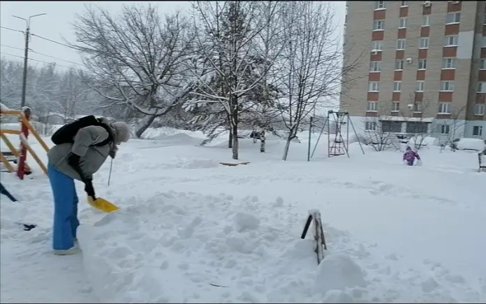 Хрупкая Светлана Гуляйкина, третий год выполняющая обязанности Домкома, сама взялась за лопату, лихо расчищая от заносов дорожки к горке.