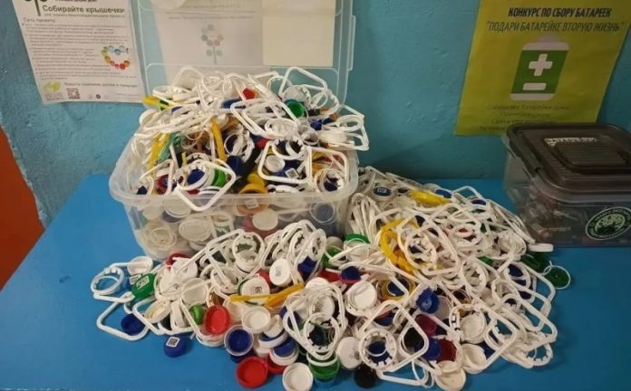 Ученик четвертого класса Александр Деров, включившись в экологическую акцию «Добрые крышечки», собрал огромное количество крышек от использованных пластиковых бутылок.