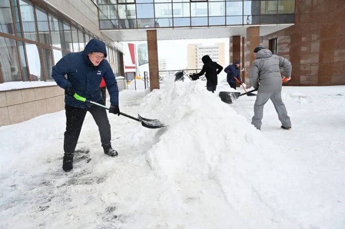 Ректор и проректоры тоже взялись за лопаты. «Теперь у нас айсберги, как в Арктике», — пошутил про образовавшиеся горы снега Дмитрий Глушко.
