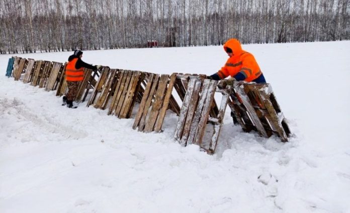 «Они снижают скорость снеговетрового потока и препятствуют поступлению метелевого снега к дороге», — поясняют специалисты.