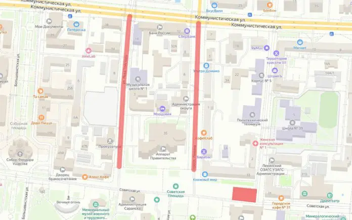 С 20:00 28 июня до 23:30 29 июня будет запрещено движение и исключена стоянка по проспекту Ленина (на участке от ул. Советской до ул. Коммунистической) и по улице Л. Толстого (от ул. Советской до ул. Коммунистической). Парковка в районе Госсобрания в это время также исключена.