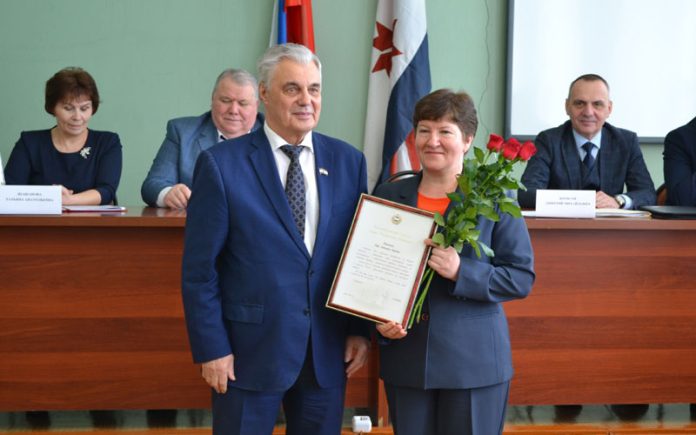На сессии Василию Васильевичу Евсееву, который почти 40 лет возглавлял в районе санитарную службу, вручена лента «Почетный гражданин Ельниковского района».