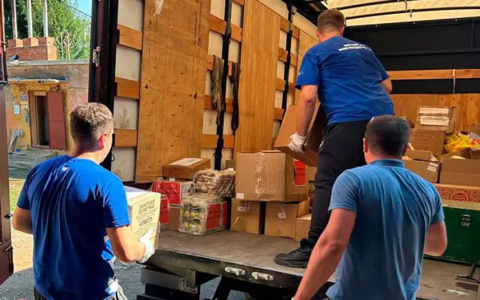 В Курскую область была отправлена вода, продукты питания, средства личной гигиены. Всего было доставлено 5 тонн гумпомощи и 28 кубов соснового бруса для восстановительных работ.
