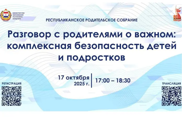 17 октября в Мордовии пройдет республиканское родительское собрание. Тема разговора — комплексная безопасность детей и подростков. Начало в 17 часов.