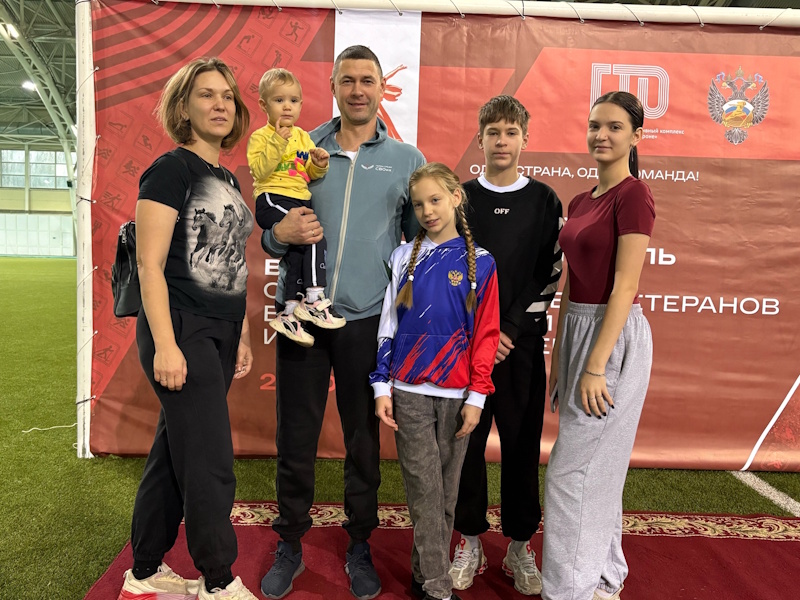 Многодетная семья Ледяйкиных прибыла в полном составе: папа Михаил, мама Алина, дети Маргарита, Прохор, Василиса и маленькая Таисия. Ребята они спортивные, часто вместе делают утреннюю зарядку. Кроме того, Маргарита – кандидат в мастера спорта по художественной гимнастике, а Прохор занимается ВМХ-гонками, имеет юношеский разряд. А папа у них настоящий герой. Михаил – ветеран специальной военной операции, участник региональной программы «Герои среди СВОих», так что у детей есть с кого брать пример.