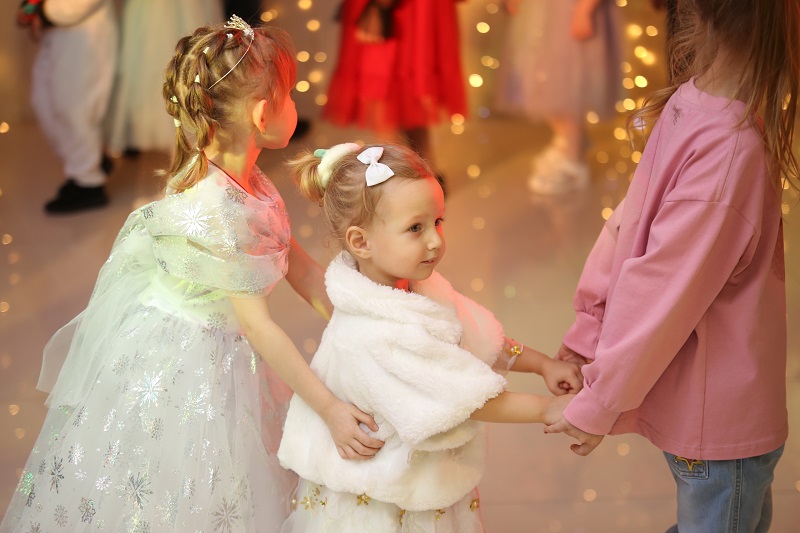 Ребятня закружилась в хороводе вокруг сверкающей огоньками ёлки вместе с очаровательной внучкой деда Ловонь стирня, рассказчицей Ёфксазы, повелительницами ветра и воды Вармавой и Ведявой, куклой Някой и забавным смотрителем дома Кудваны.