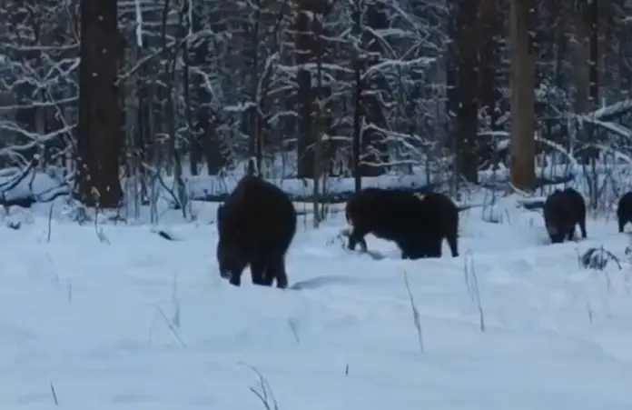 Наиболее интересные кадры с медведями, рысями и другими дикими животными, размещаются в соцсетях. Последними героями видео стали кабаны, которые пришли покормиться на зимнюю поляну.