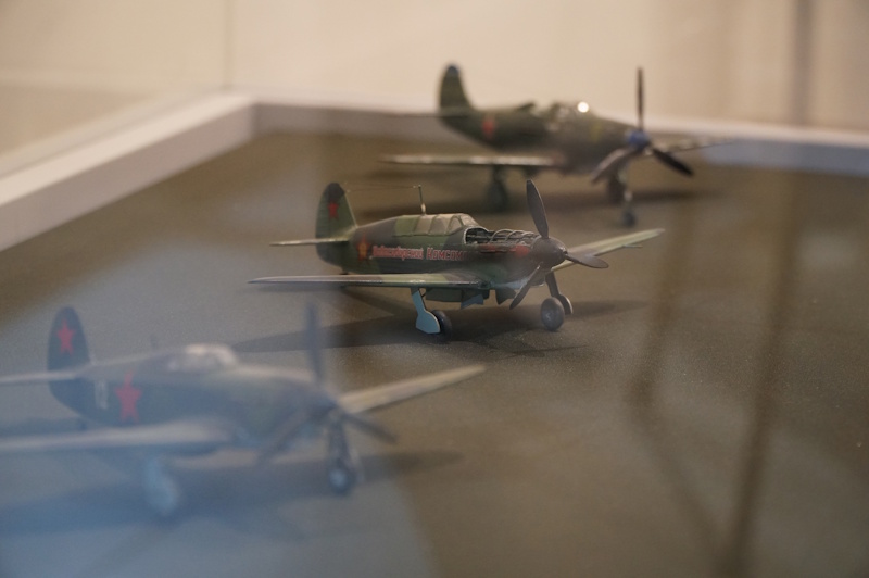 Вниманию посетителей саранской экспозиции «Крылья мужества…» также предлагаются уменьшенные копии самолётов, на которых Михаил Девятаев учился летать, сражался с врагами и служил в санитарной авиации. Уникальные модели для выставки любезно предоставил известный в нашей республике коллекционер протоиерей Сергий Сакович. На вернисаже священник рассказал, что в детстве ему посчастливилось лично встречаться с легендарным лётчиком: «Именно благодаря общению с Михаилом Петровичем ещё в юности у меня возникло увлечение авиамоделированием».