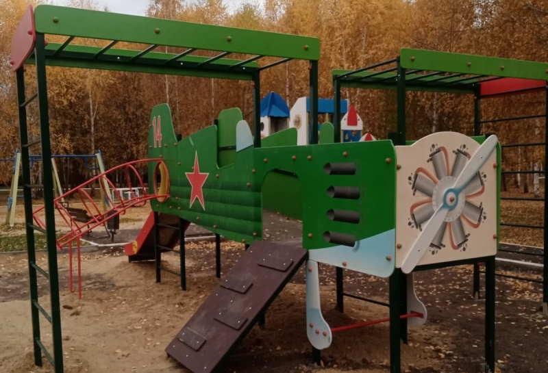Чуть раньше закончена установка и новой детской игровой площадки «Самолёт» в том же самом парке. Юным жителям района есть, где провести время весело и с пользой!