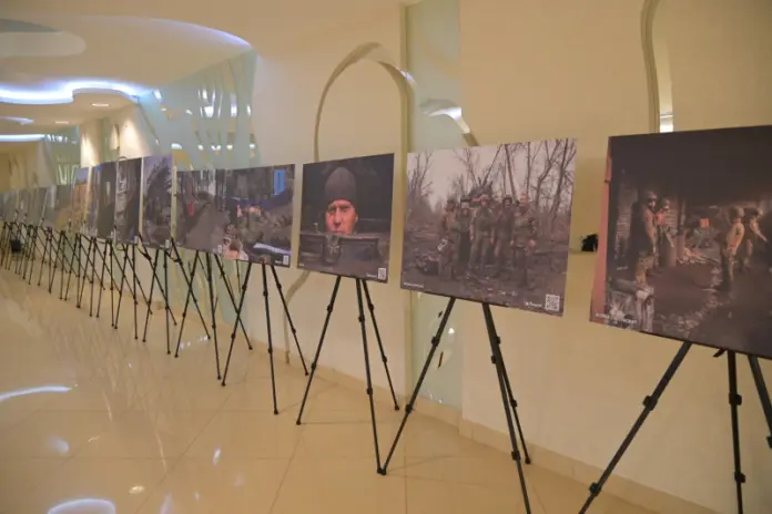 До начала главного политического события года в регионе меньше часа, участники постепенно заполняют тысячный зал Республиканского дворца культуры. Каждый из них с большим интересом останавливается и рассматривает выставку «Хроника войны», которая представлена в фойе. На снимках — герои нашего времени — участники специальной военной операции. Снимки носят говорящие названия «Перекур после штурма», «Точка эвакуации», «Александр Невский, моли Бога о нас», «Осталось немного», » Работа миномётчика», «Дорога на передовую».