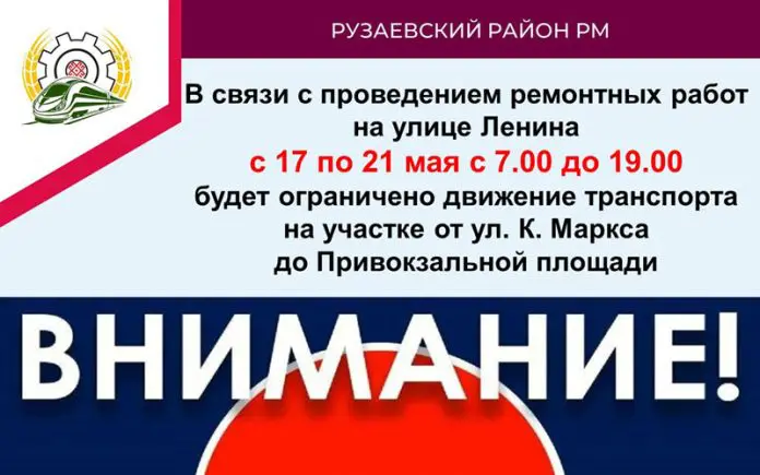 В Рузаевке ограничат движение по улице Ленина. Об этом сообщили в администрации района.